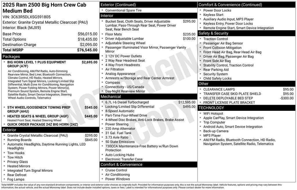 Whether you're tackling tough job sites, towing heavy loads, or simply enjoying the open road, this 2025 Ram 2500 Big Horn is the perfect companion. Its exceptional performance, advanced technology, and luxurious amenities make it a standout in the heavy-duty truck segment.