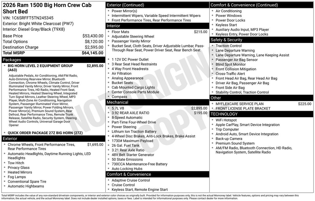 2026 Ram 1500 BIG HORN CREW CAB 4X4 5'7 BOX