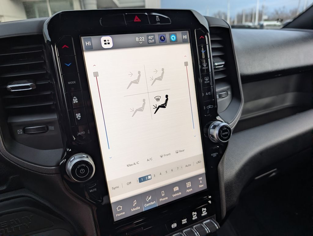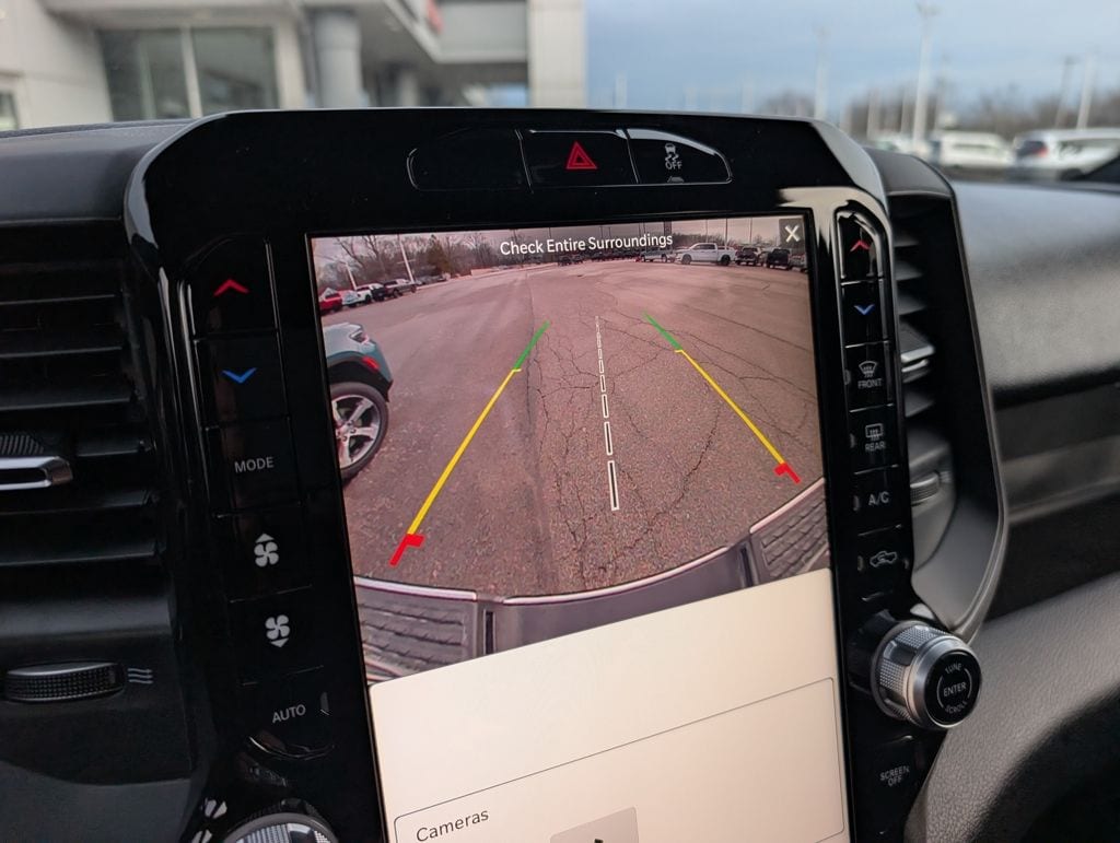Inside, the cabin offers a comfortable and well-appointed environment. The Cloth 40/20/40 Bench Seat, Dual-Zone Automatic Temperature Control, and Power-Adjustable Mirrors ensure a pleasant driving experience, while the GPS Navigation, SiriusXM with 360L, and Uconnect 5 infotainment system keep you connected and entertained.