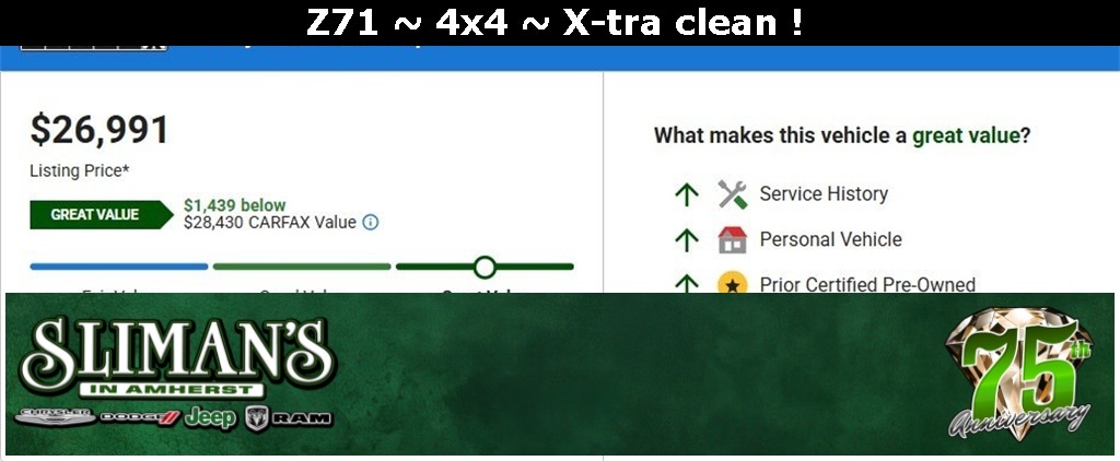 Thank you for taking the time to look at this handsome-looking 2020 Chevrolet Colorado. Call us today at 440-988-4484. At Sliman's Chrysler, Dodge, Jeep & Ram in Amherst, our pricing philosophy is simple...We believe that by putting our best bottom-line price on every vehicle, it will eliminate any unnecessary hassling during your automotive shopping experience. Let us show you the difference! Our family has been in the automotive industry for over 75 years, and that says a lot about our reputation. Featuring some of the finest vehicles in Northeast Ohio. Let our family serve your family! We are conveniently located between Ohio Route 2 and the Ohio Turnpike.
