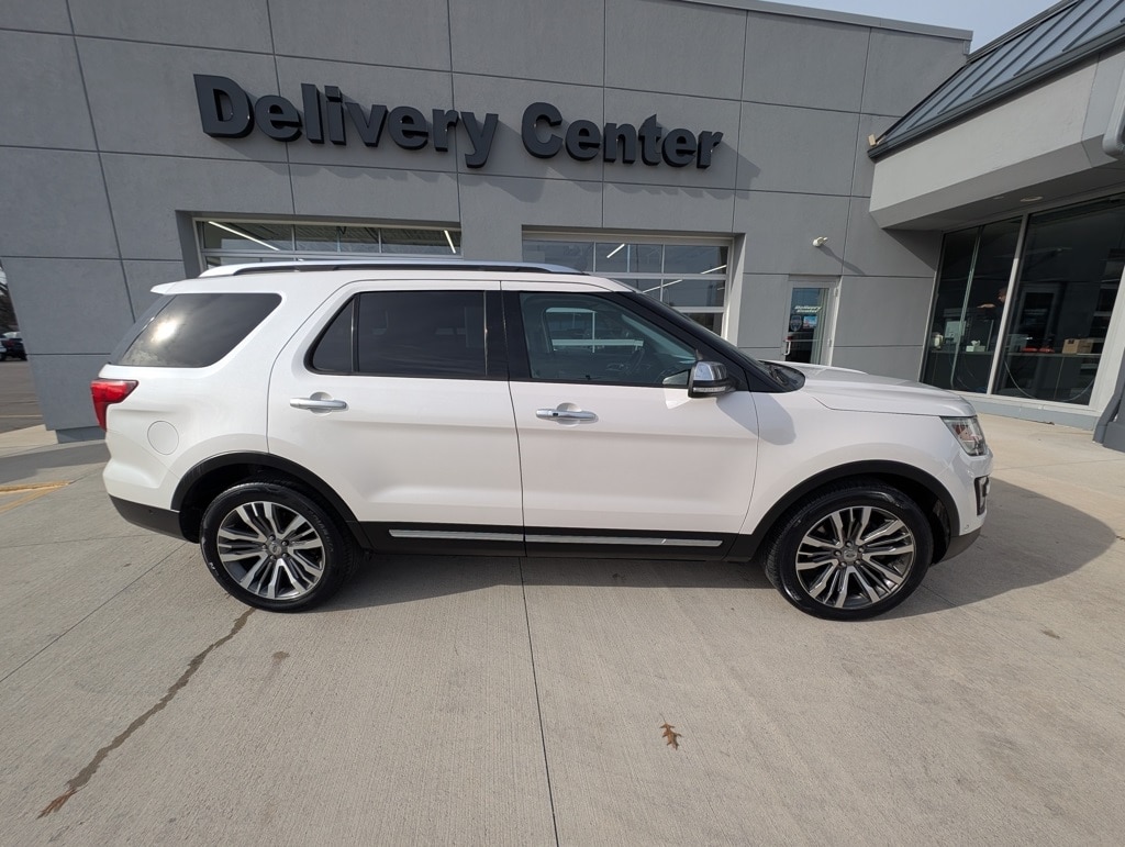 2017 White Platinum Ford Explorer Platinum. This Ford Explorer has many features and is well equipped, including Auto High-beam Headlights, Equipment Group 600A, Exterior Parking Camera Rear, Heated door mirrors, Heated & Ventilated front seats, Heated rear seats, Heated steering wheel, Lane Departure Warning System, Navigation System, Power Liftgate, Power moonroof, Rain sensing wipers, SYNC 3 Communications & Entertainment System. Get Approved ~ Come in today or call us now at 440-988-4484!