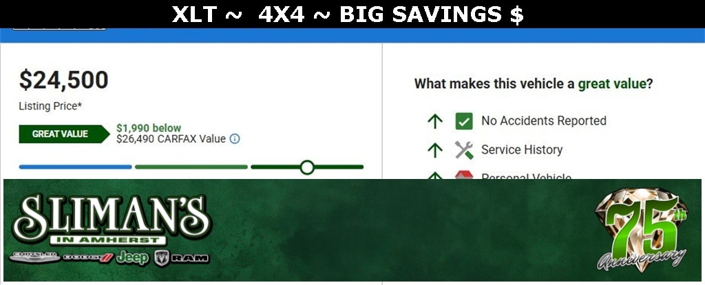 Thank you for taking the time to look at this wonderful 2020 Ford F-150. Call us today at 440-988-4484. At Sliman's Chrysler, Dodge, Jeep & Ram in Amherst, our pricing philosophy is simple...We believe that by putting our best bottom-line price on every vehicle, it will eliminate any unnecessary hassling during your automotive shopping experience. Let us show you the difference! Our family has been in the automotive industry for over 75 years, and that says a lot about our reputation. Featuring some of the finest vehicles in Northeast Ohio. Let our family serve your family! We are conveniently located between Ohio Route 2 and the Ohio Turnpike.