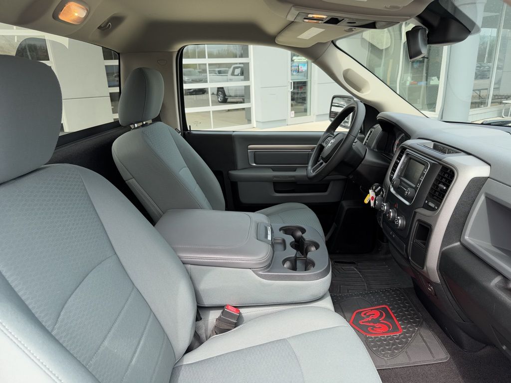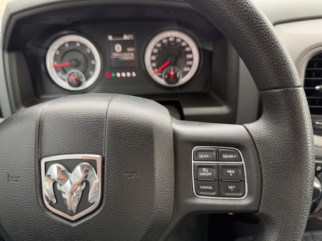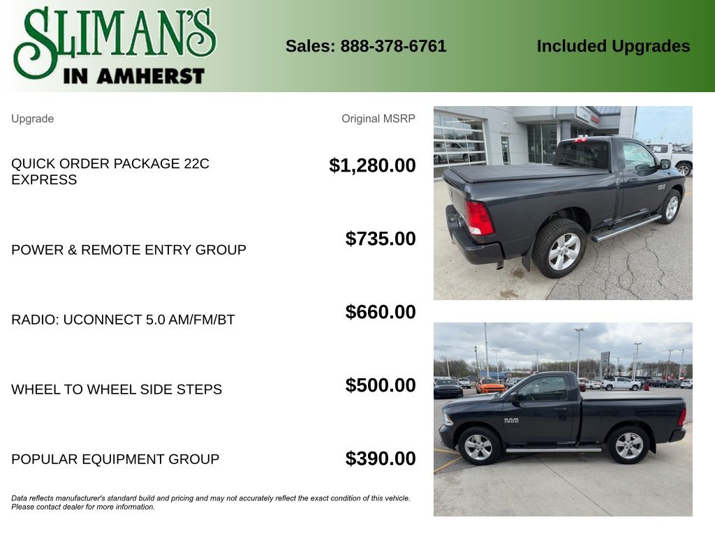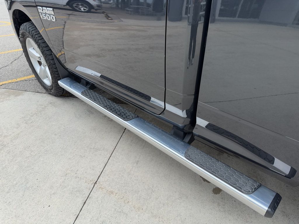 This Ram 1500 Express is equipped with a host of features that will enhance your driving experience. The Uconnect 5.0 infotainment system with a 5-inch touchscreen display keeps you connected and entertained, while the SIRIUSXM Satellite Radio provides endless entertainment options. The power heated fold-away mirrors and remote keyless entry with all-secure add convenience and security, and the wheel-to-wheel side steps make it easy to access the cabin.